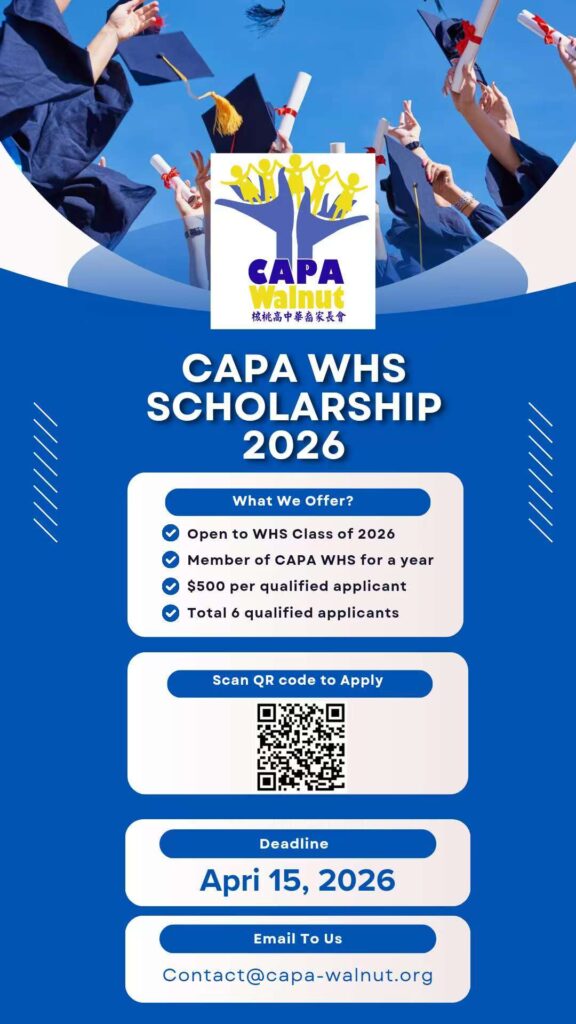 CAPA of Walnut High School is proud to offer 6 scholarships of $500 each to graduating seniors from the Class of 2026 🎓